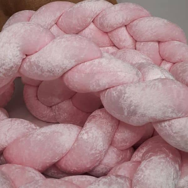 Tour de lit tressé, velours brillant rose, douce au touché.
